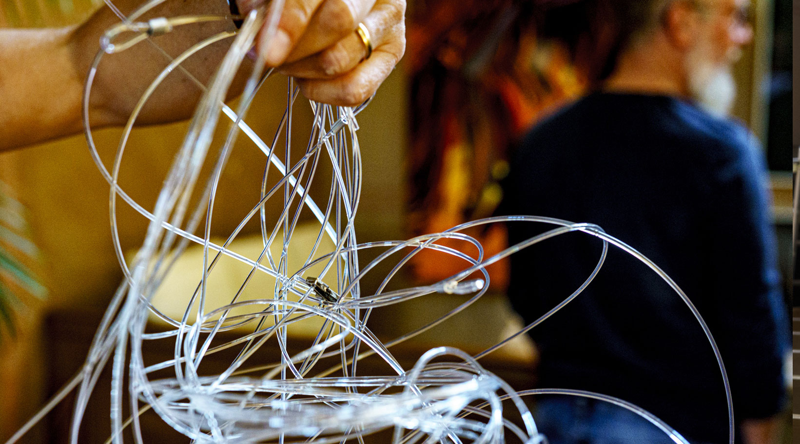 Alltagsgegenstände, die nicht mehr in Benutzung sind, werden zu Kunstobjekten verarbeitet, wirken so wie Museumsstücke aus längst vergangenen Zeiten. Vergänglichkeit zieht Gegenwärtiges mit sich.